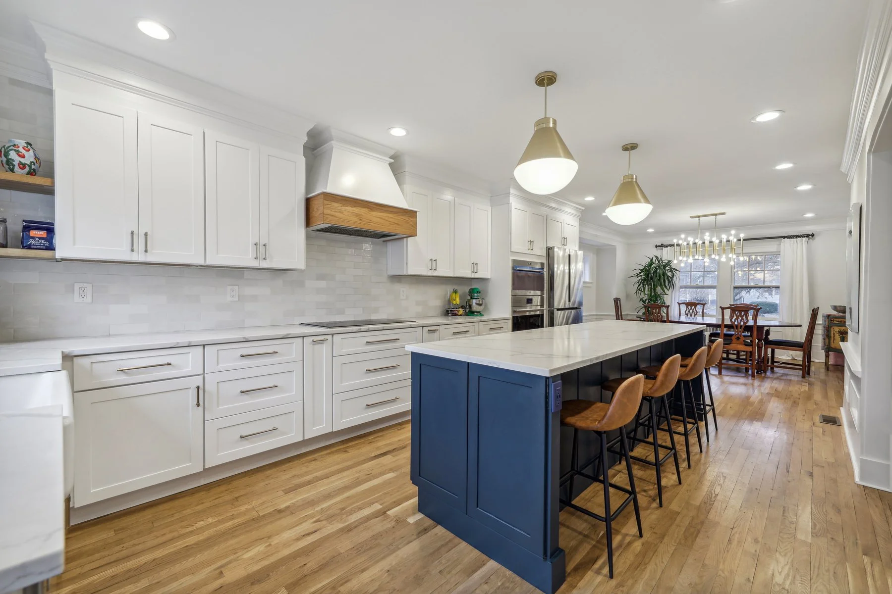 The Highmont Home team renovated the Fairfield Project in Montclair, NJ. Services included Space Planning, Design Planning, Construction and Project Management. We reconfigured and maximized this 1924 brick center hall Colonial’s existing footprint to create an open concept dining room to kitchen with center island, opened a connection to an existing family room addition, added a mudroom with bench, cubbies and two deep closets as well as renovated the powder bath, 2nd floor laundry room and painted the exterior and added front porch curb appeal.